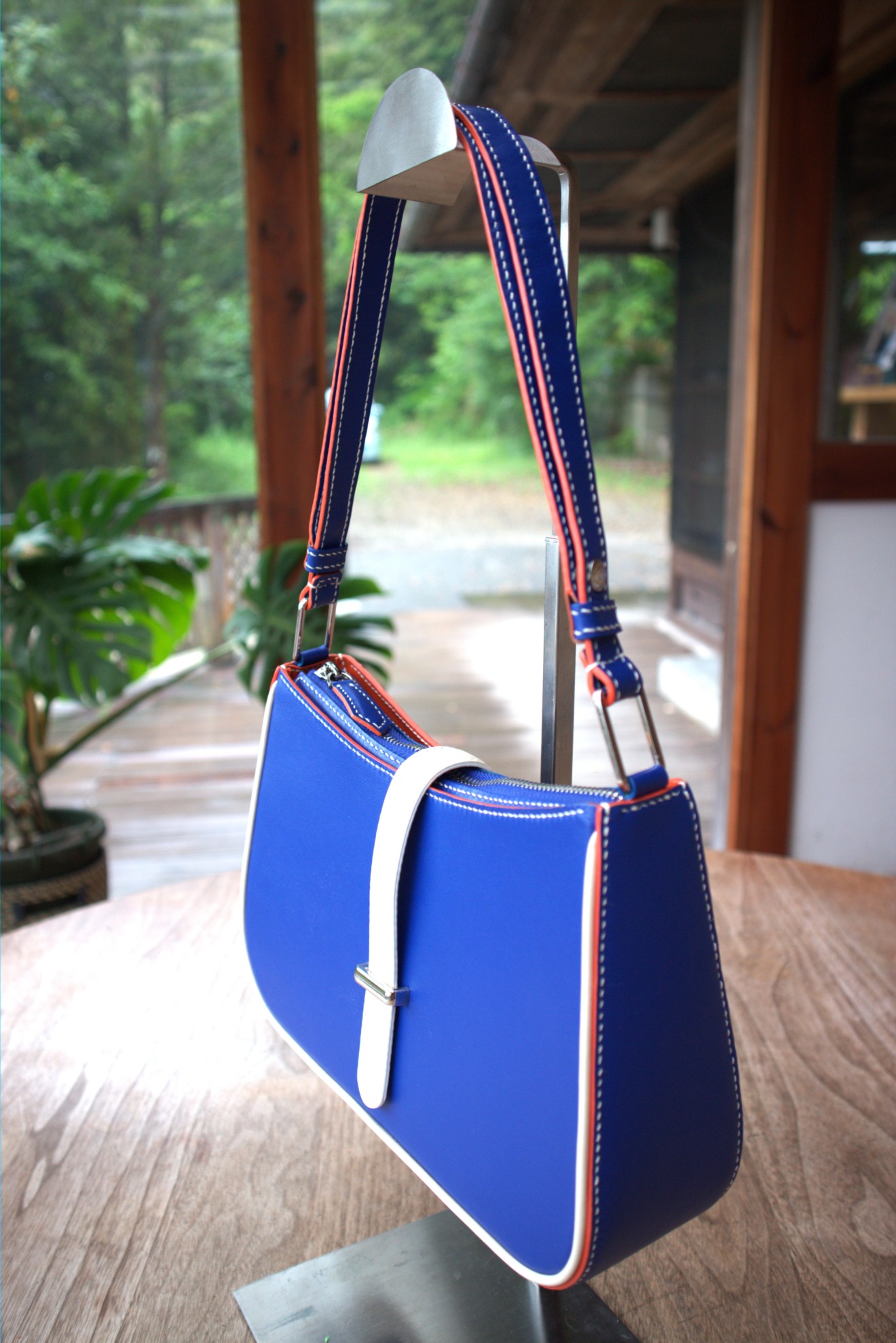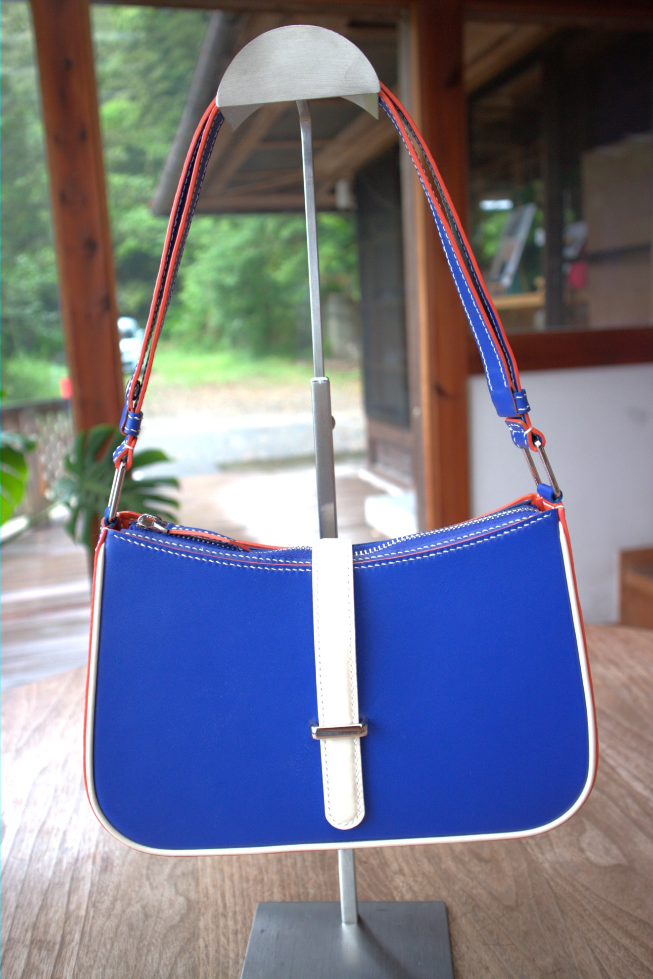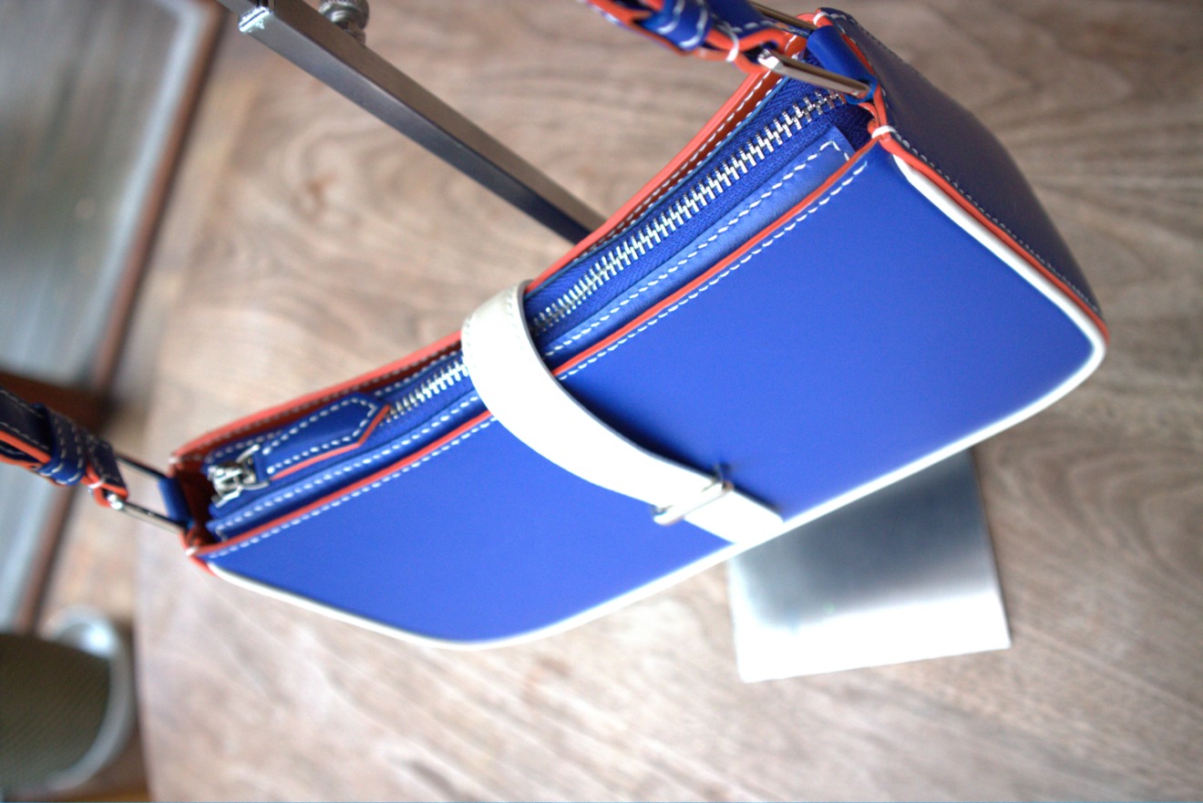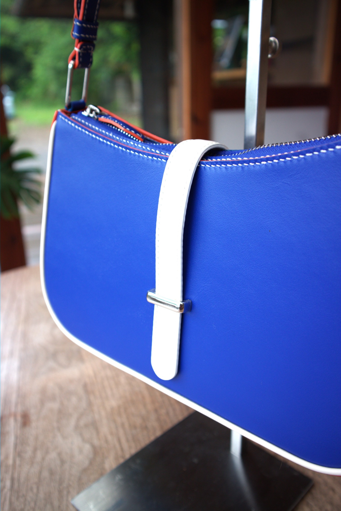 配色は外側はスムースレザーのブルーにホワイトを入れてパキッとしたお色に!