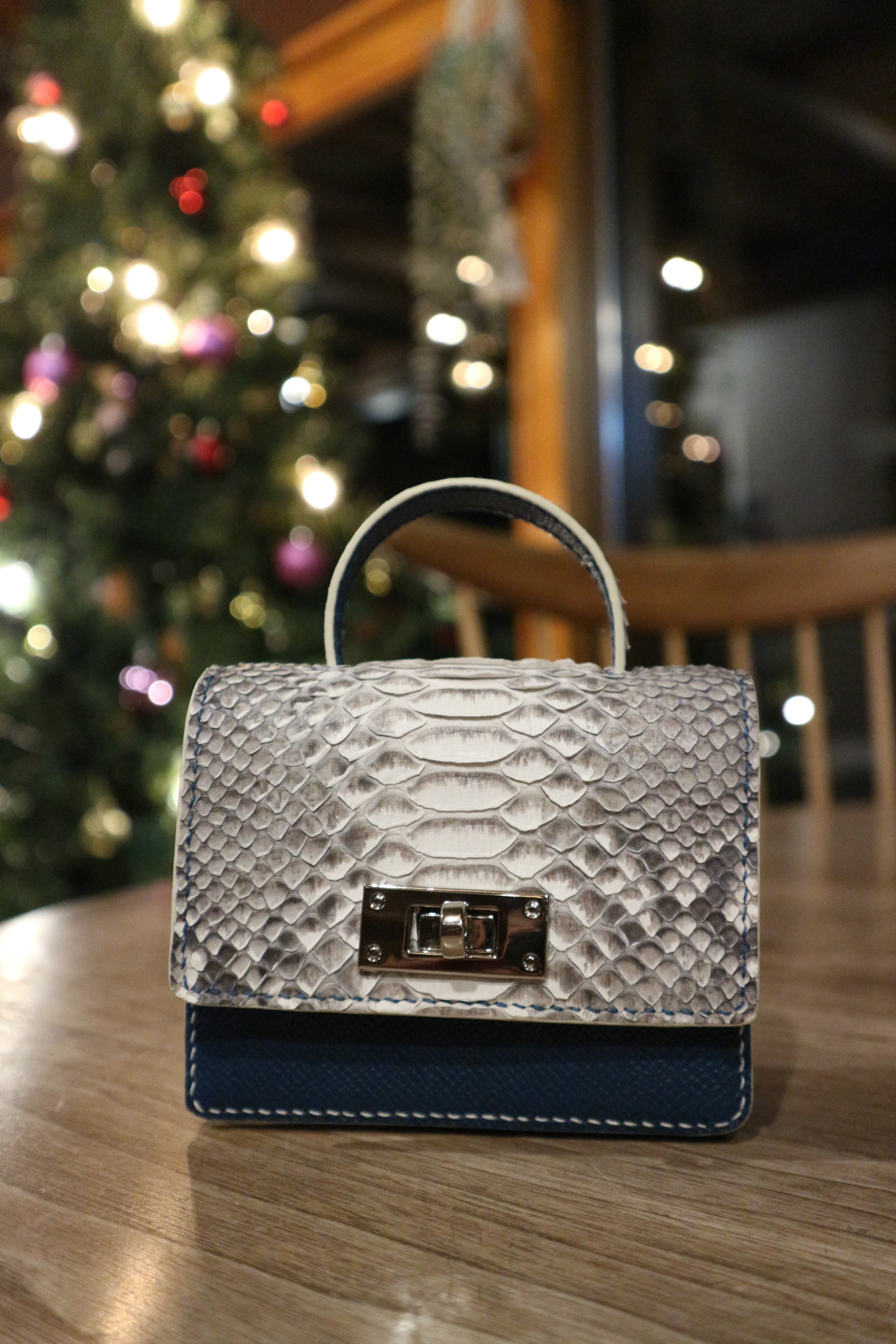 外:パイソンレザー ナチュラル/ エプソンレザー ブルーレギオン